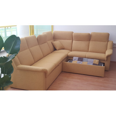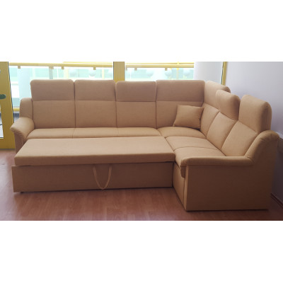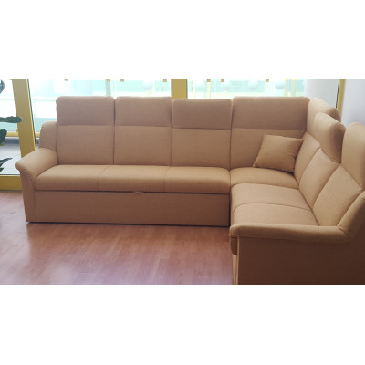 Sedežna garnitura z nastavljivimi vzglavniki ter visokim naslonom. Izdelana iz vodoodbojne poliesterske tkanine. Večjo funkcionalnost pa dajeta ležišče (200 x 127 cm) in predal za shranjevanje (98 x 63 cm).